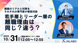 【10/31開催】離職のリアルと対策をそれぞれの専門家が徹底対談『若手層とリーダー層の移植理由は同じ?違う?』無料ウェビナーを開催します!